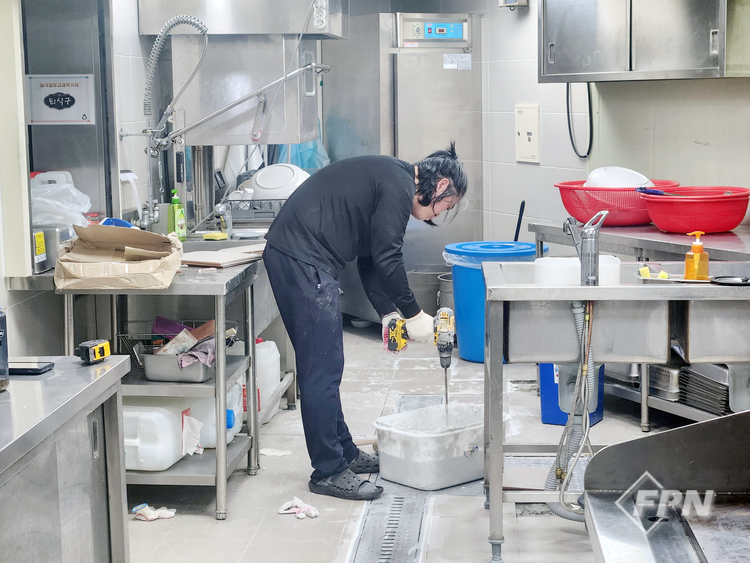 ![]() ▲ 동계기간 식당 타일보수 작업 중인 필자 |