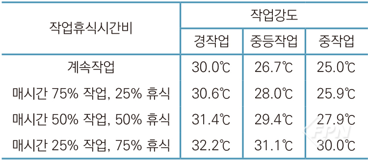 ![]() ▲ [표 1] 고열 작업 노출 기준15) |