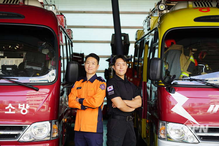 형형색색의 의자와 함께 아기자기한 소화기가 놓인 성북소방서 어린이안전체험관 안. 서로에게 하고 싶은 말이 있는지를 묻는 기자의 질문에 동생인 박정수 서울119특수구조단 소방교가 걱정 섞인 눈으로 형인 박지수 성북소방서 소방교를 바라본다.