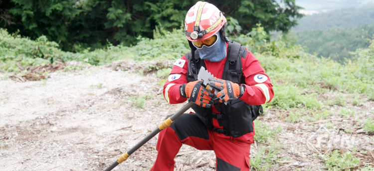 ![]() ▲ 일체형 고글마스크를 착용한 채 다목적 불갈퀴를 사용하는 모습 |