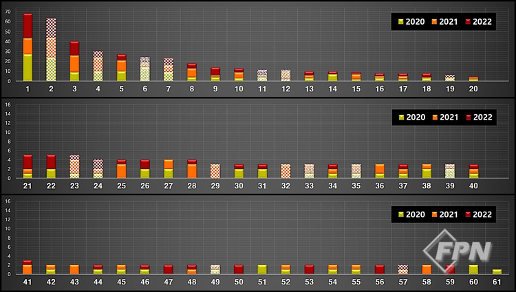 최근 3년간(2020~2022년) 전국 18개 시도 소방본부에서 받은 기초자료를 활용해 국내에서 발생한 크고 작은 화학사고 원인 물질을 파악해 봤다.