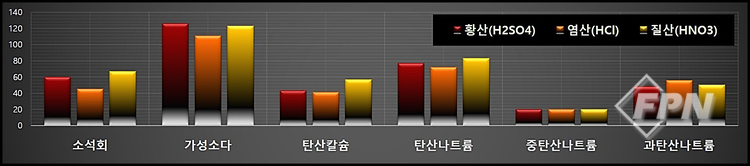 산성 화학물질 누출 시 과량의 ‘중탄산나트륨’을 사용하더라도 사고 현장 인근 주민의 안전은 물론 출동대원의 신변안전까지 확보할 수 있다. ‘중탄산나트륨’은 가격 면에서도 다른 염기중화제와 비교할 때 저렴한 것으로 확인됐다.