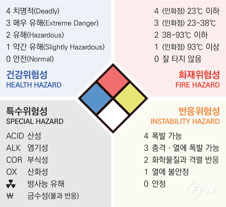 ![]() ▲ [그림 6] NFPA(National Fire Protection Association) 704 위험등급 분류 |