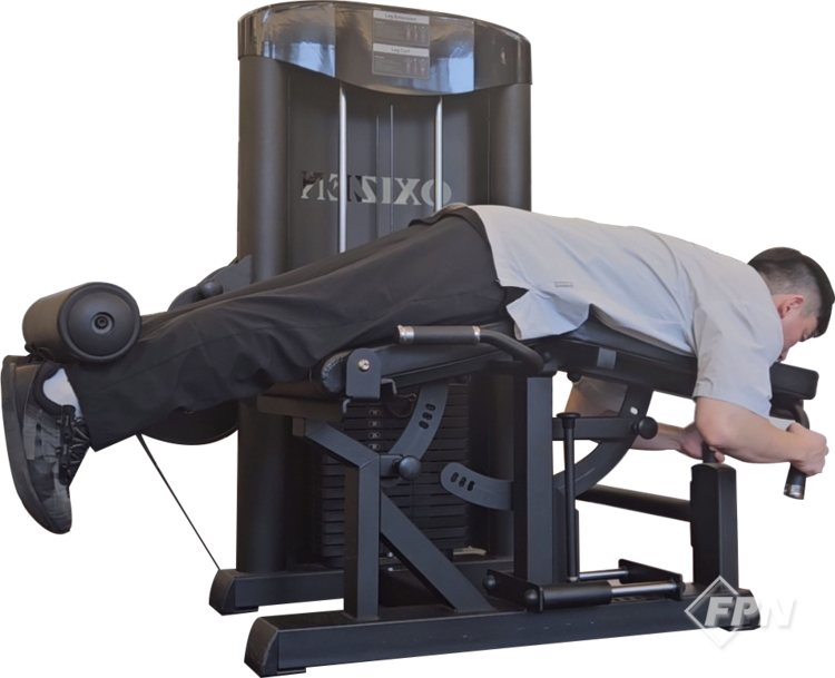- 엎드려서 하는 레그 컬 머신은 의자 받침대, 발걸이 패드, 등받이 패드 등 총 세 부위를 조정해야 합니다.