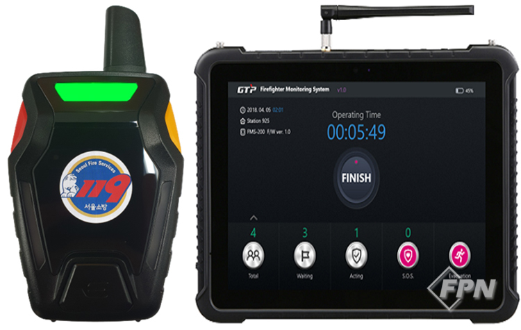 이번에 소개할 제품은 ‘현장대원 안전관리시스템(FTMS)’입니다. 이는 갑작스러운 사고로 위험에 처한 현장 대원을 신속히 구조할 수 있도록 돕는 구조경보 시스템입니다. 태블릿 PC 일체형인 ‘현장지휘 단말기(CD)’와 무선식 인명구조경보기인 ‘현장대원 단말기(PD)’로 구성됩니다.