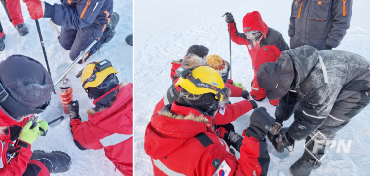 ![]() ▲ 1차 해빙 코어 샘플 채취 성공 |
