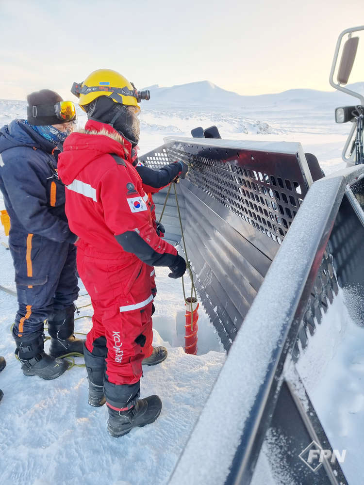 작업에는 극야 기간 실내에 갇혀 지냈던 조리대원도 함께했다. 필요한 장비를 세팅하고 해빙 코어를 채취할 위치의 GPS를 확인한 후 작업이 시작됐다. 첫 번째는 순조롭게 해빙 코어를 채취할 수 있었다.