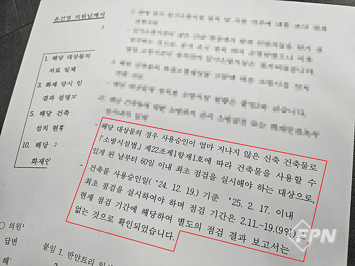[FPN 최영 기자] =반얀트리 화재 당시 진행 중이던 소방시설 최초점검이 사실상 무의미했다는 지적이 나오고 있다. 점검 시점에도 건물 내부 공사가 한창이었고 소방시설 자체가 부실했기 때문이다. 최초점검을 발주한 주체가 건물 소유자나 운영자가 아닌 시공사였던 점도 논란이다. 점검의 신뢰성과 공정성을 확보하기 위한 제도 보완이 시급하다는 목소리가 나온다.