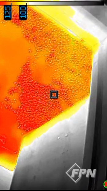 TIC의 종류에 따라 고온 구역에 색상을 입혀주는(Color Pallet Overlay) 온도가 다르다. TIC 화면에 지나치게 빠르고 과도하게 색상을 입혀주면 열대류 현상을 가려버린다. 아래 그림은 열대류가 천장을 따라 배기구 쪽으로 이동하는 모습을 보여준다.